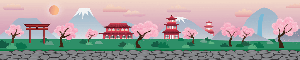 Since this is set in Japan, I needed to make sure the background had elements from their culture. The background is parallax, so using Illustrator I drew 5 different layers: